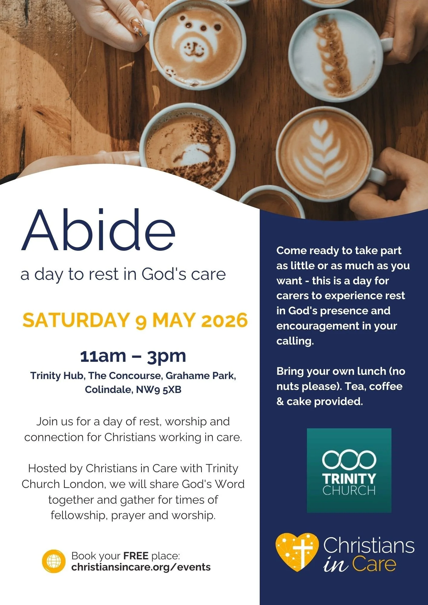 Click here to register with Christians in Care. We will send you the Zoom details!